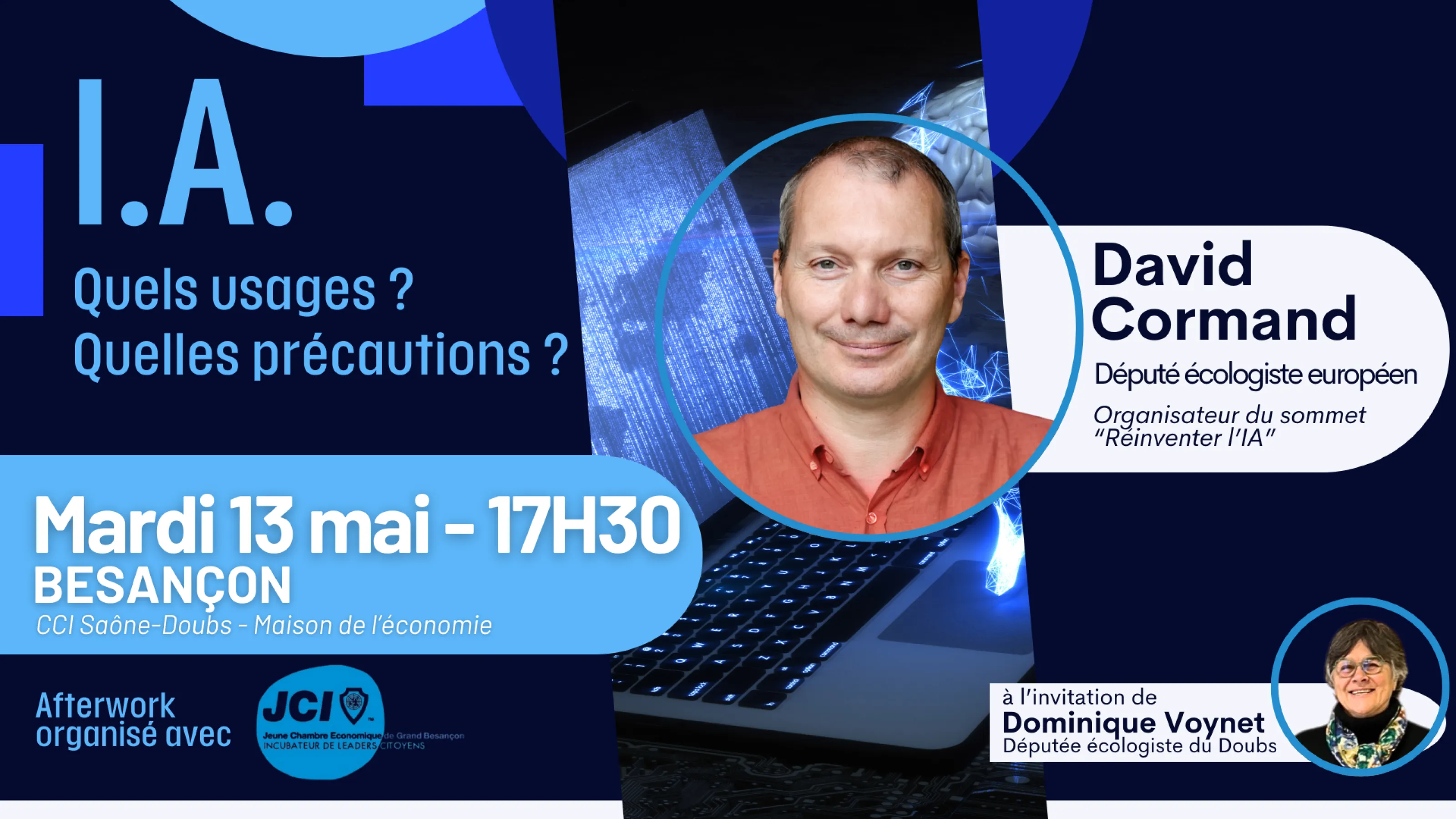 Dominique Voynet, députée écologiste du Doubs, a le plaisir de vous inviter à un afterwork-débat co-organisé avec la jeune chambre économique du Grand Besançon, autour des enjeux éthiques, démocratiques et environnementaux de l’I.A;